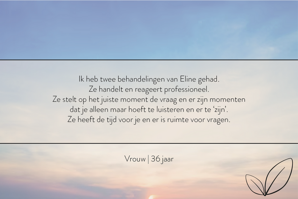 NEI gaf mij inzicht in de oorzaak van mijn klachten en bood een oplossing om er ook daadwerkelijk van af te kunnen komen. Hier ben ik vervolgens hard mee aan het werk gegaan.